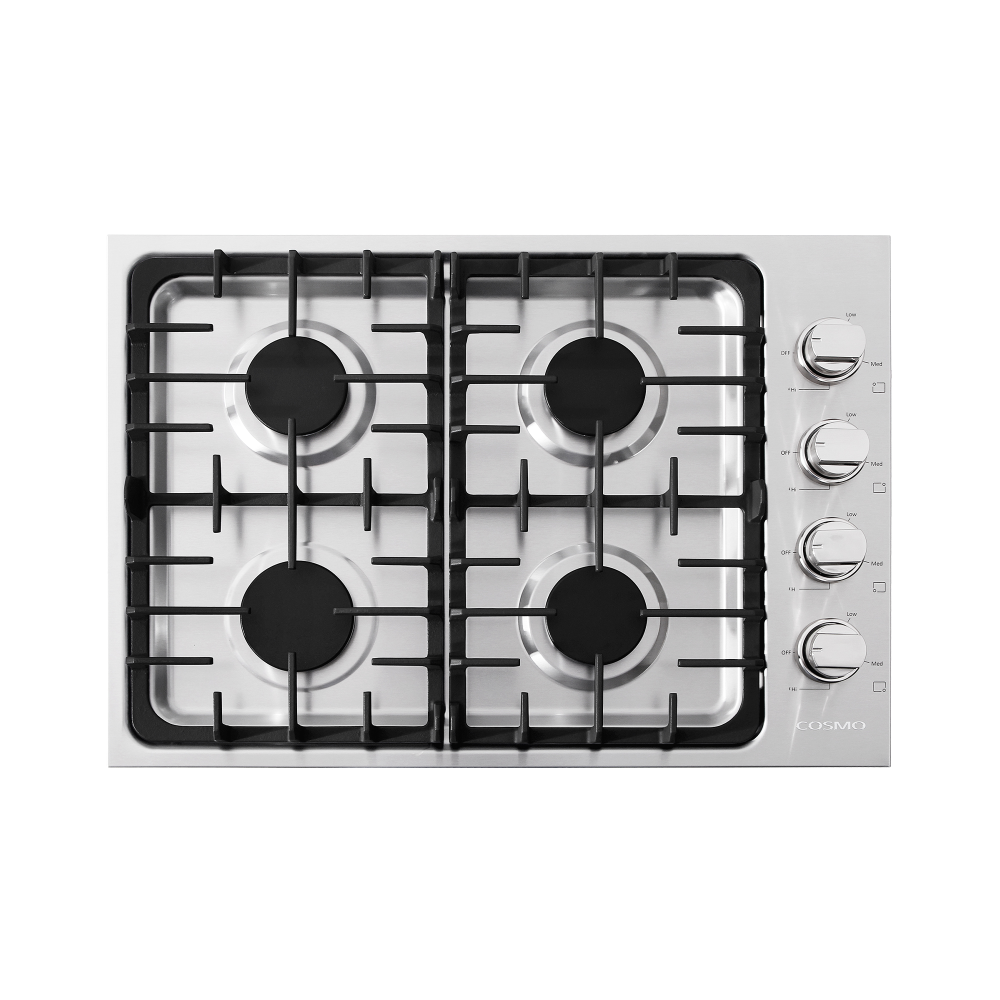 30" Drop-In Cooktop with 4 Italian-Made Sealed Gas Burners and Cast Iron Grates