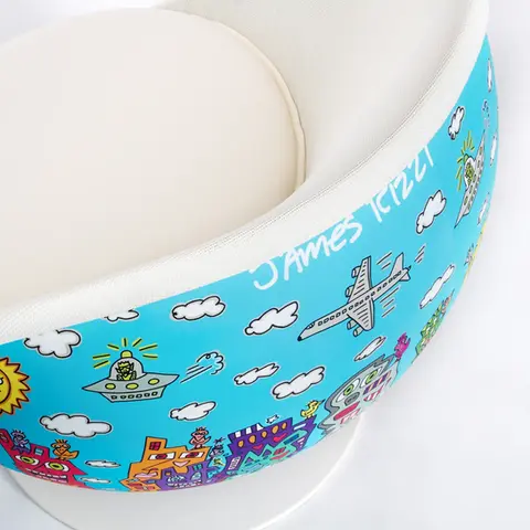 Dieser Kugelsessel aus Kunststoff ist wie ein weißes Blatt: offen für immer neue Interpretationen eines klassischen Designs. Nicht nur die Bezüge und Farben lassen sich variieren – vor allem die Schale selbst wird zur Leinwand. Lackieren, bedrucken, bemalen oder bekleben: Der Fantasie sind keine Grenzen gesetzt. Mal extravagant, mal dezent, mal charmant, mal mit klarer Botschaft – je nach Gestaltung fügt sich der Retro Kugelsessel harmonisch in seine Umgebung ein oder wird bewusst zum Statement. Pop Art lebt von genau dieser Freiheit.