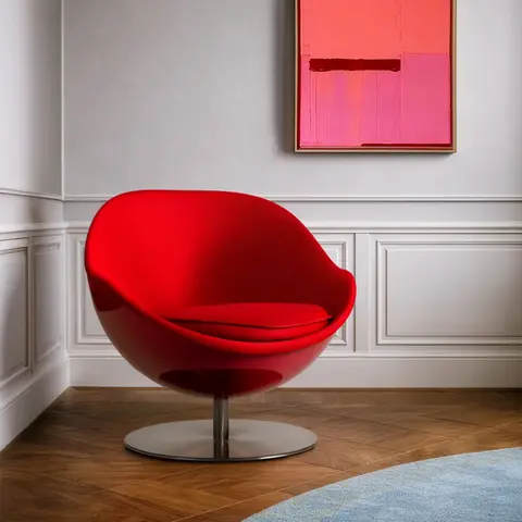 Alle art Kunststoff Kugelsessel und Kugelstühle sind rund wie eine Kugel – die klarste Form, die wir kennen. Ohne Ecken und Kanten entsteht eine durchgehende Außenfläche, reduziert auf das Wesentliche und dennoch voller Ausdruck. Egal ob auf rundem Metallfuß oder stabilem Vierfußgestell montiert, der Space Age Kugelsessel lässt sich um die eigene Achse drehen und eröffnet immer neue Perspektiven. Außen futuristisch und kühl, innen überraschend weich gepolstert – ein Ruhepol, der Komfort und Design mühelos vereint.